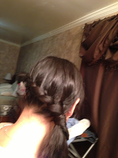 | I tied the lace braid when I got to the end and I hid the ponytail holder with my hair. |